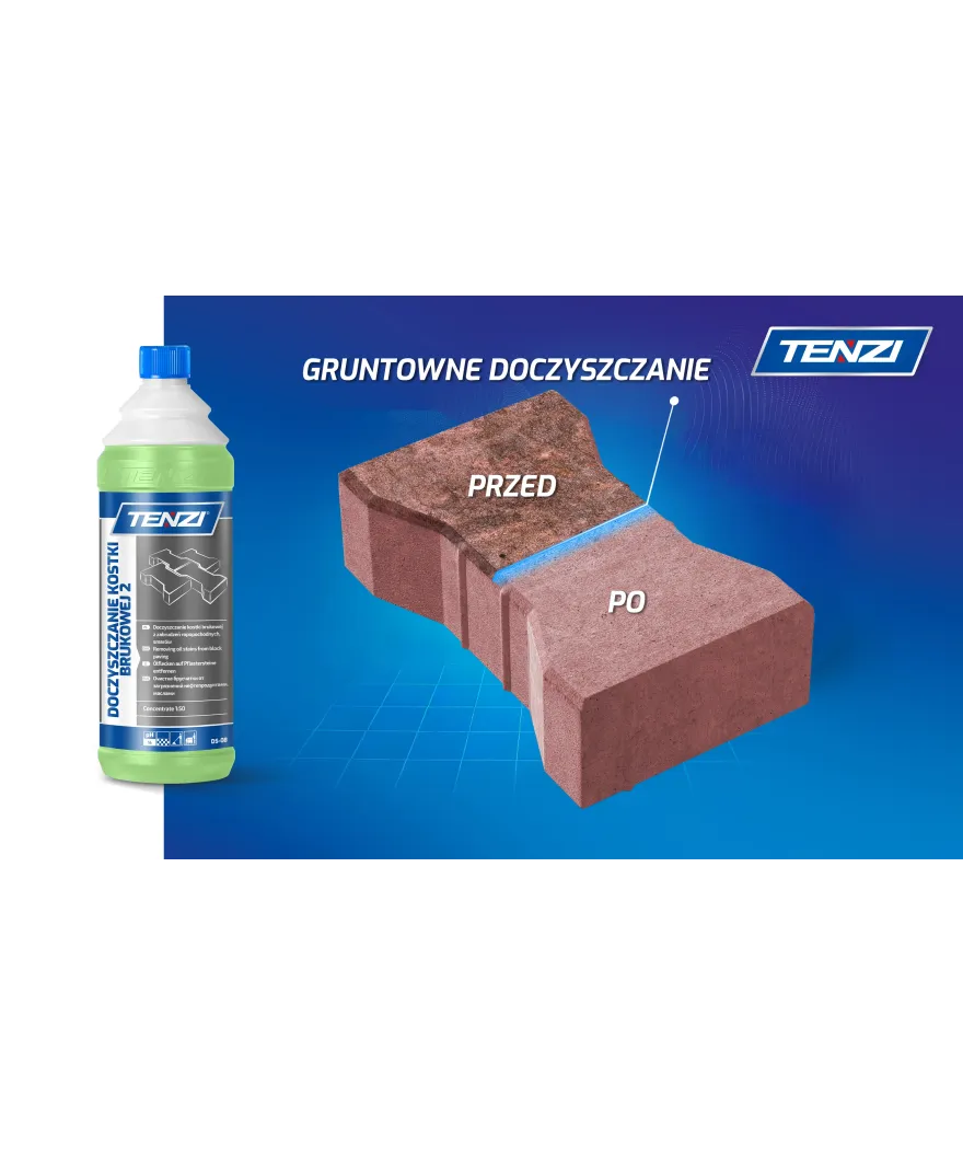 Madala vahutavusega aluseline puhastusvahend sillutiskivide, betoonplaatide, asfalteeritud terrasside, sissesõiduteede, kõnniteede ja liiklusmärkide jaoks.