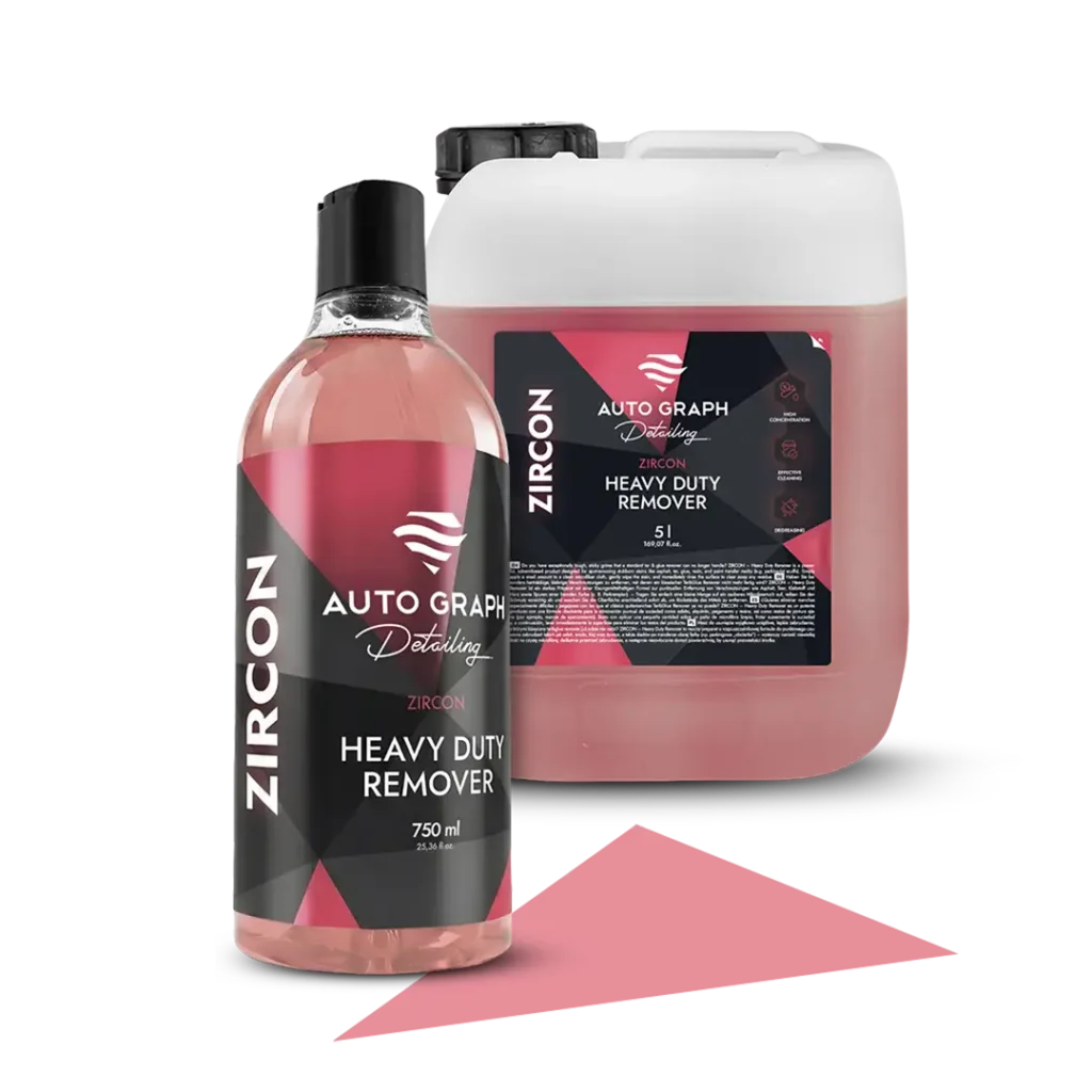 ZIRCON – Heavy Duty Remover on võimas lahustipõhine toode, mis aitab eemaldada saasteaineid nagu asfalt, tahm, liim ja vaigud, samuti värviülekande jälgede (nt parkimiskriimustused) – kanna lihtsalt väike kogus puhtale mikrokiudlapile, pühi kahjustatud ala õrnalt ja loputa pind kohe maha, et eemaldada kõik tootejäägid.